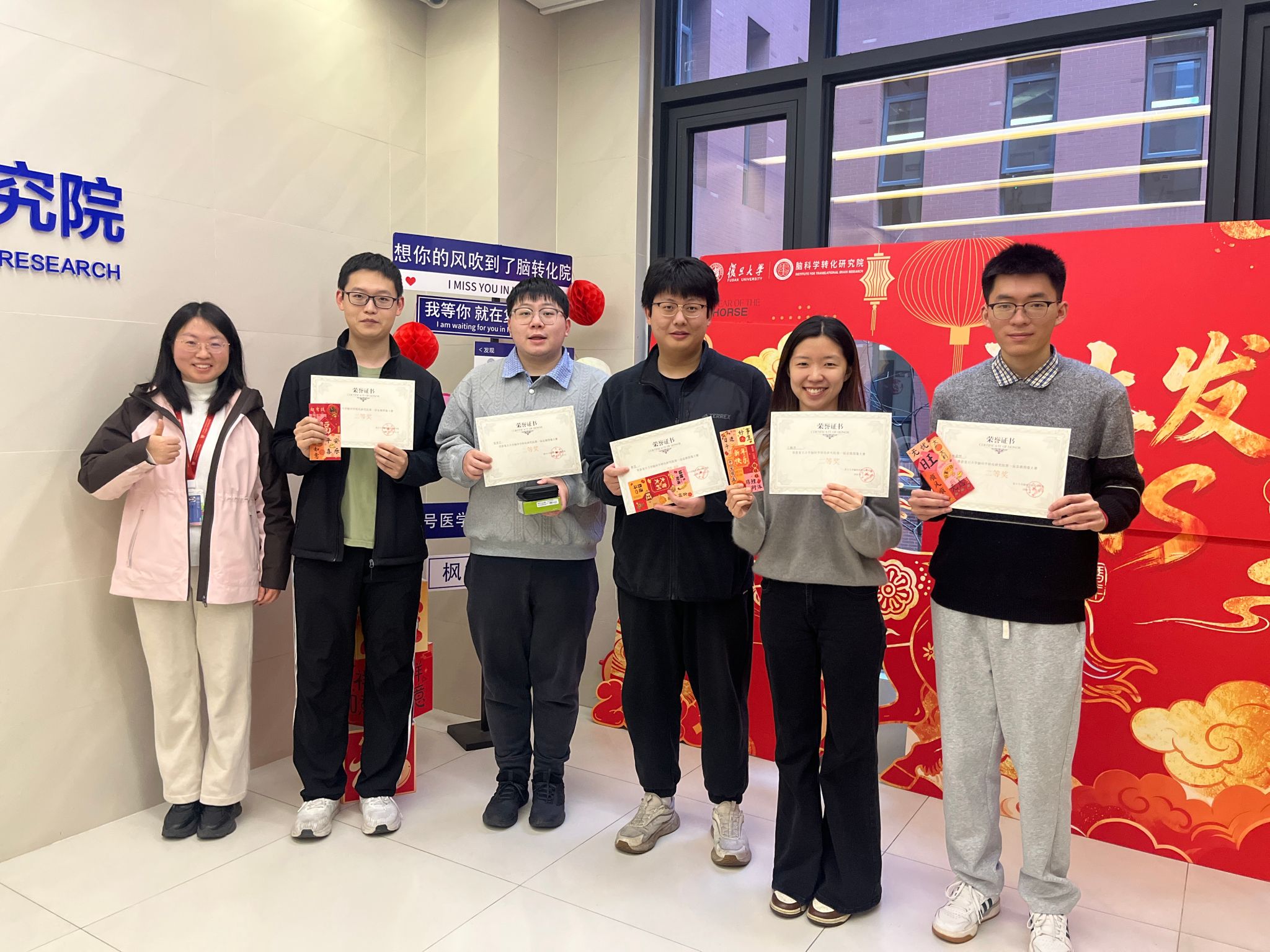 三等奖获得者领取了虎牌保温杯、200元现金红包等奖品。