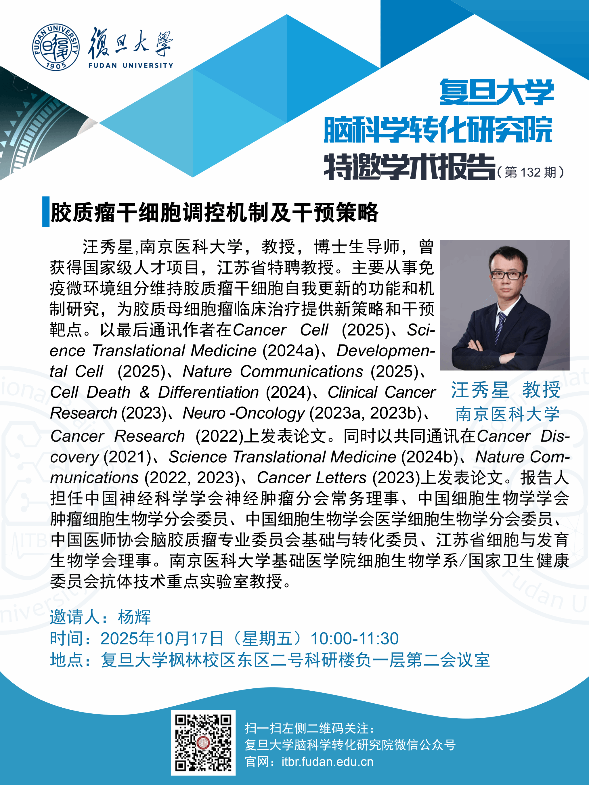 上一条:学术报告第135期:Paving the Axonal Highway for CNS Repair