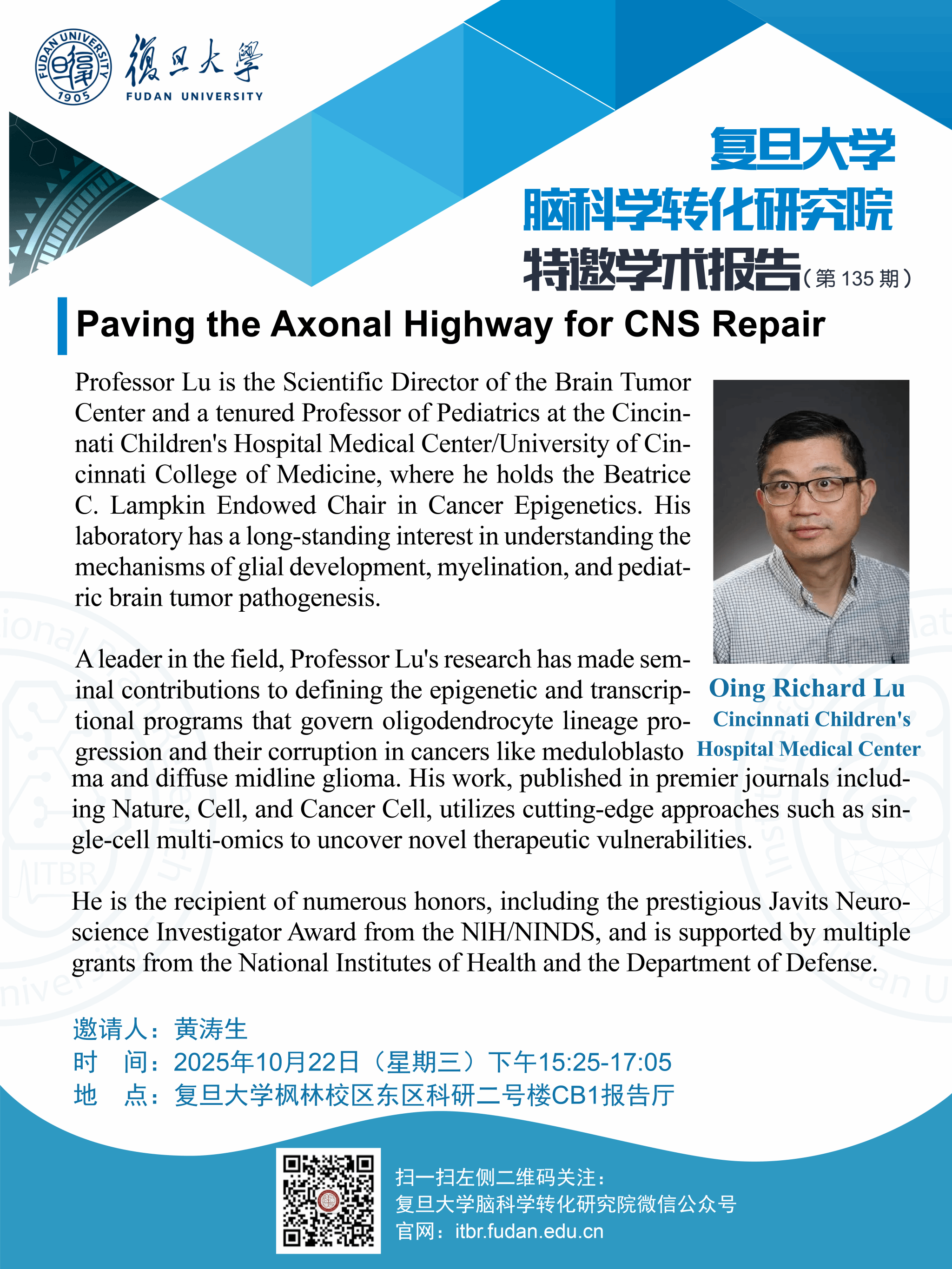学术报告第135期:Paving the Axonal Highway for CNS Repair-复旦大学脑科学转化研究院