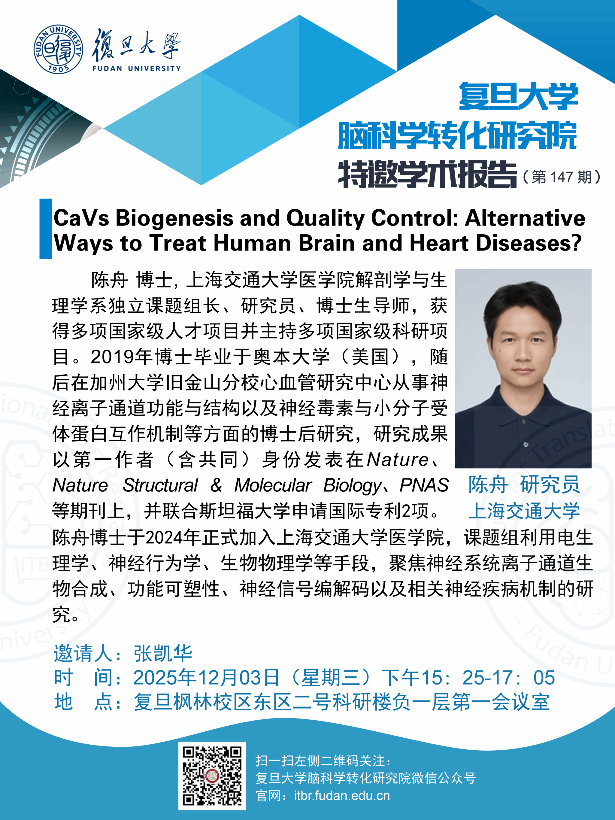 学术报告第147期:CaVs Biogenesis and Quality Control: Alternative Ways to Treat Human Brain and Heart Diseases?
