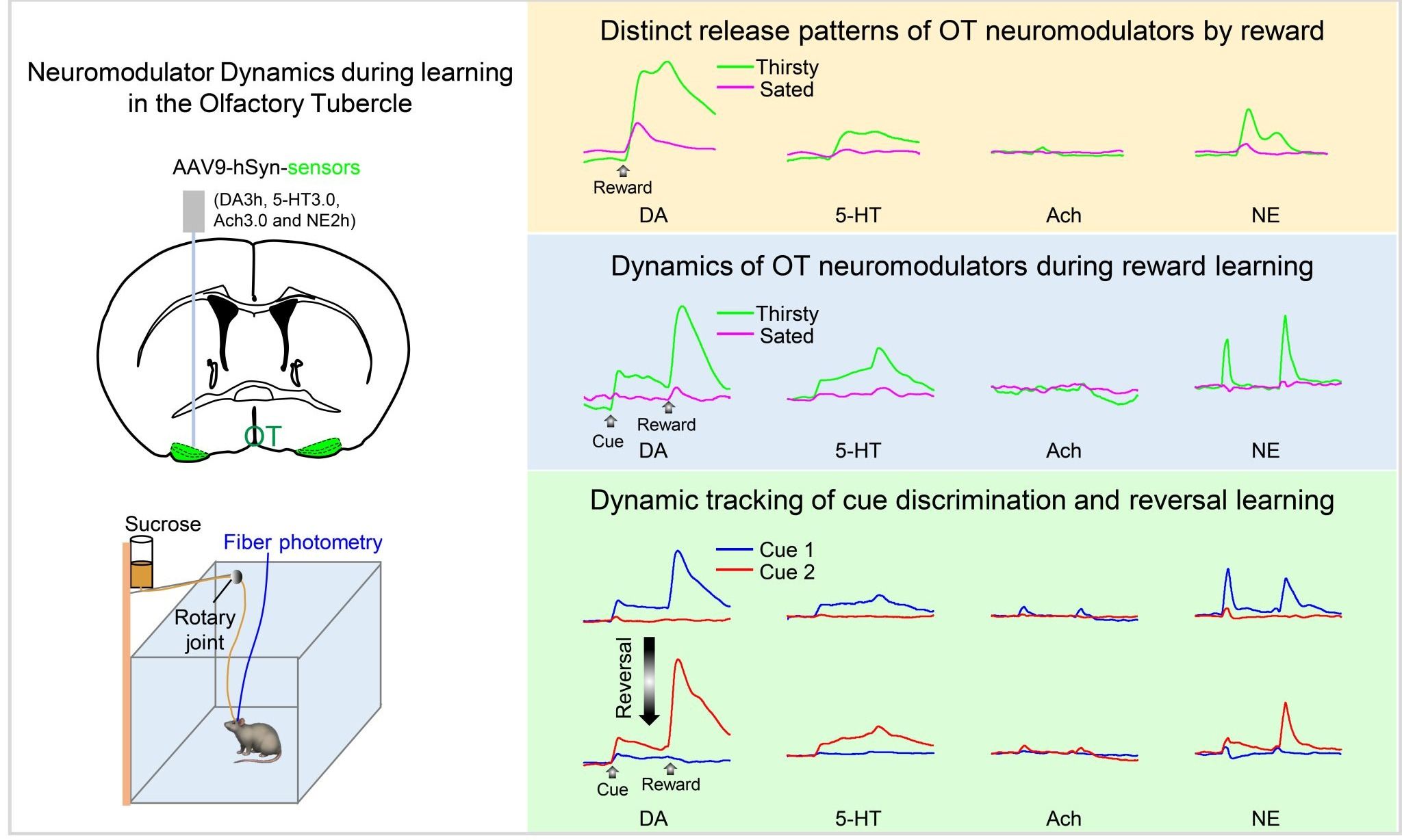 Maojun Hong#, Liuting Zou#, Yiqing Chen, Juan Guo, Zhixiang Xu, Tong Ma, Shuaishuai Hu*, Rongfeng K. Hu*. (2026) Neuromodulator dynamics underlying associative learning in the ventral striatum's olfactory tubercle. Advanced Science.
