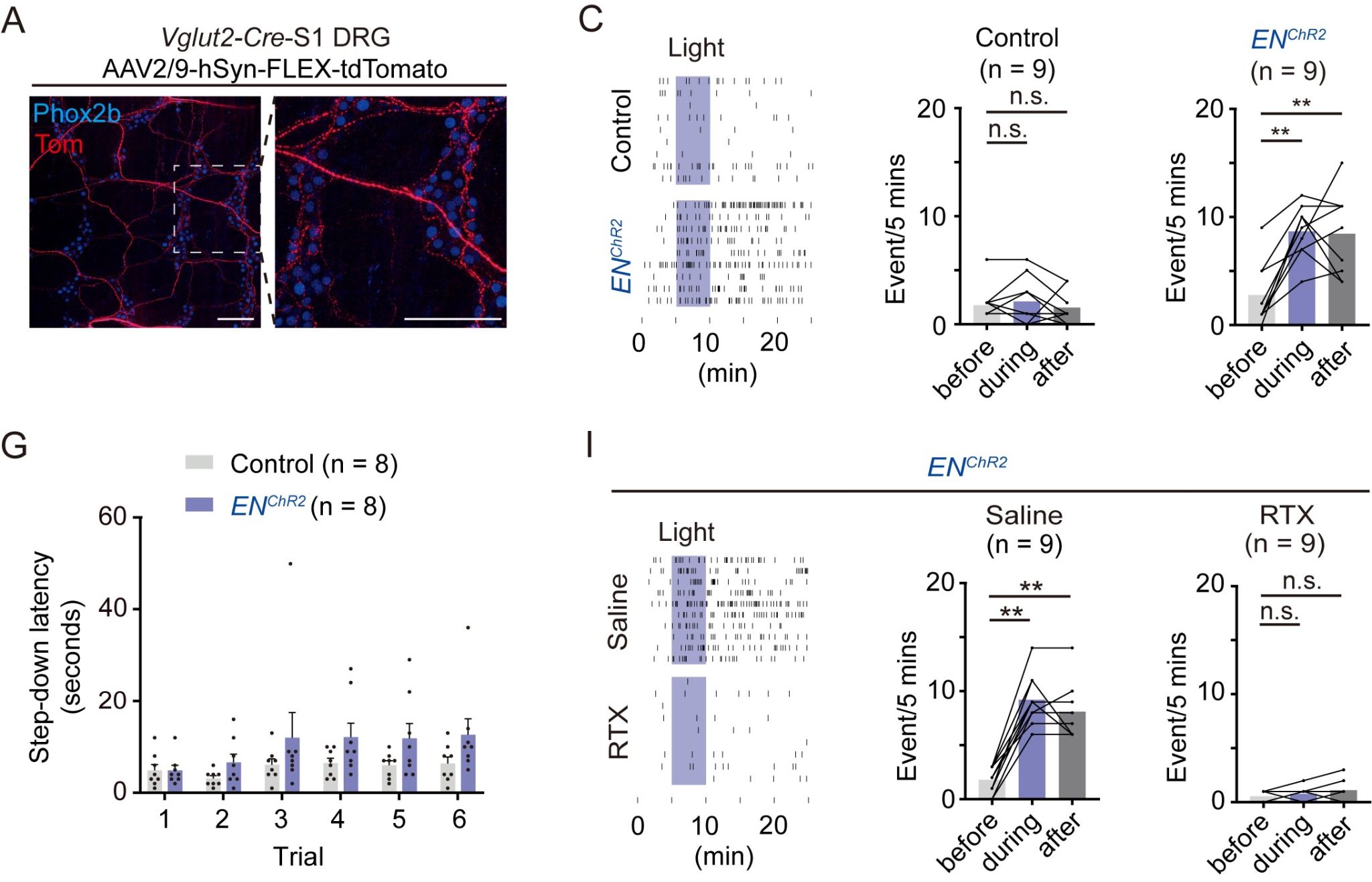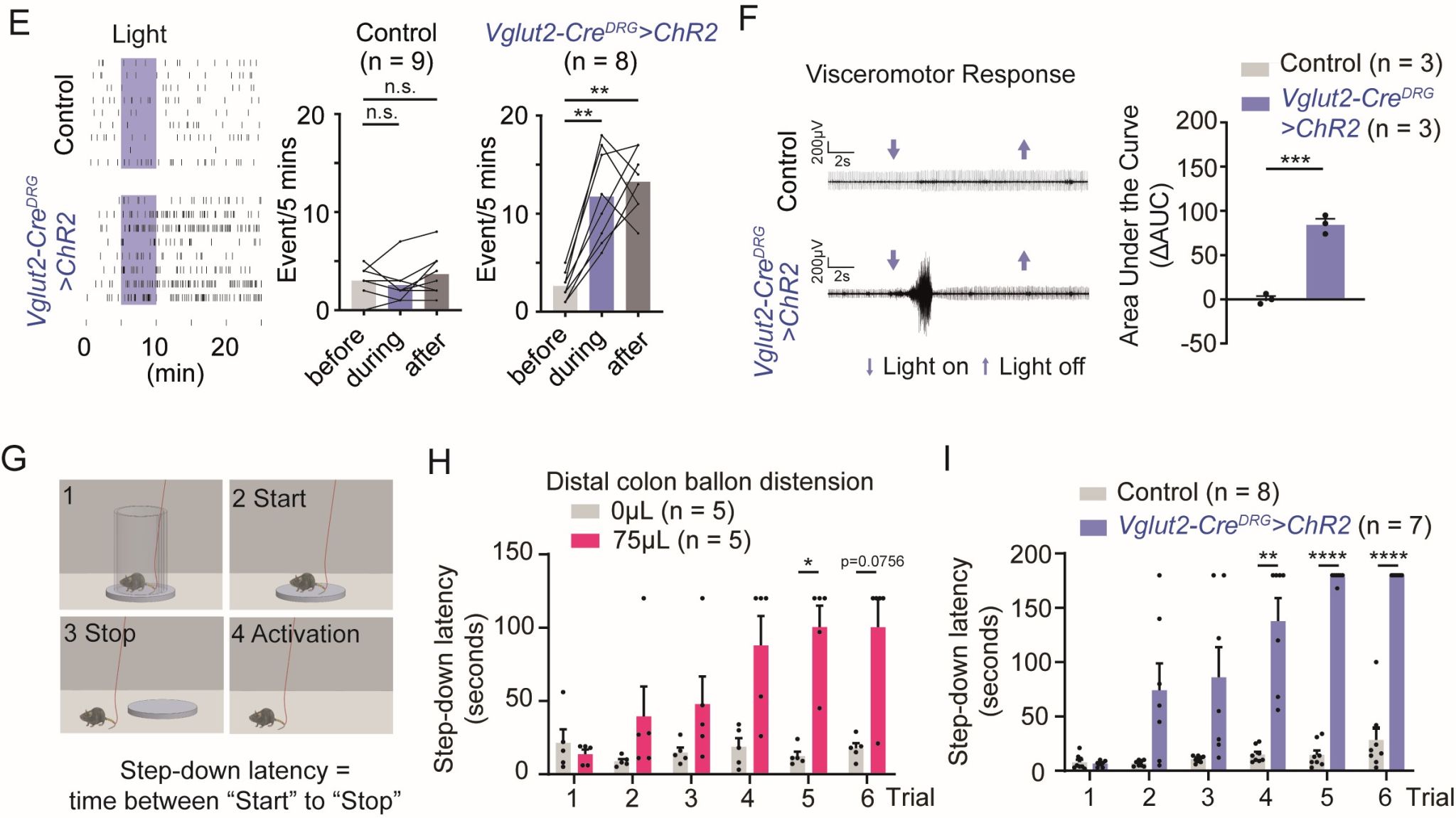 图2:光遗传激活支配直肠的DRG末梢诱发弓背反射和负性情绪