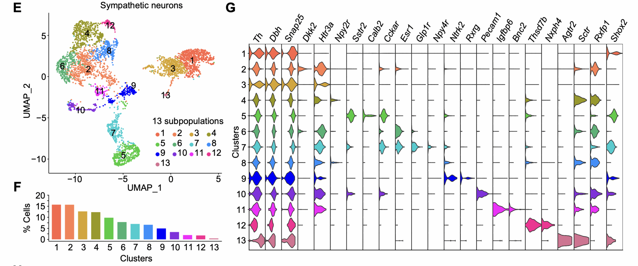 图2.单细胞转录组学揭示CG-SMG交感神经元的细胞多样性