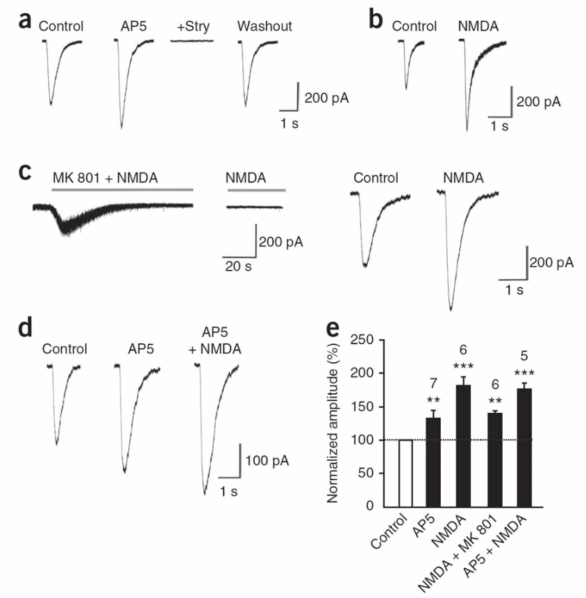 中枢神经系统中的神经元兴奋性主要由突触兴奋和抑制之间的平衡控制。在脑干和脊髓中,突触兴奋是由作用于离子型谷氨酸受体门控阳离子通道的兴奋性递质谷氨酸介导的,而突触抑制则由作用于甘氨酸受体门控氯离子通道的抑制性递质甘氨酸介导。我们发现,在培养的脊髓神经元和大鼠脊髓切片中,谷氨酸及其类似物配体均能增强甘氨酸受体介导的电流。这种增强作用不依赖于任何已知谷氨酸受体的激活,并表现为单通道开放概率的增加。此外,在瞬时表达甘氨酸受体的HEK293细胞中也观察到了这种谷氨酸的增强作用。我们的数据 strongly 表明,谷氨酸通过变构方式增强甘氨酸受体门控的氯离子通道,从而模糊了兴奋性与抑制性递质之间的传统界限。这种快速的内稳态调节机制对于调整中枢神经系统中突触兴奋与抑制之间的功能平衡可能具有重要意义。