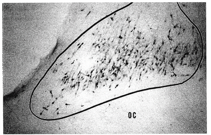 图五 SCN区域出现Tau神经原纤维缠结[10]