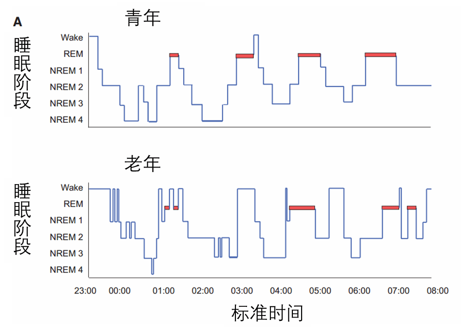 人在进入老年后,睡眠结构会发生一系列明显的变化,如图一所示: