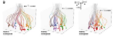 研究人员对序列信号何时出现分歧很感兴趣。于是将每一刻的所有神经元信号向量投影到解码得到的子空间中,按照时间连接成连续的曲线,如下图。