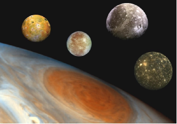 1610年 初 ,伽利略 在观察木星时,发现周围有三颗小而亮的星星,两颗在东侧,一颗在西侧。刚开始他只是将它们当作普通的恒星,只是它们在天空中的视觉位置和木星靠的比较近。但第二天,他发现这三颗星星却都跑到了木星的西侧;第三天,他发现,只有两颗出现在东侧,另一颗消失了。如果这三颗星星和恒星的话,短时间内它们在星空中和木星的相对位置是不会有这么大的变化的。因此,伽利略就假设这三颗星星在围绕着木星运动。通过 长达一个月的木星观测, 他 确信 有四颗星星 始终 以不 同的距离围绕木星转动。在 1610年3月,他 认定这些星星 就 是木星的卫星 。为 了纪念伽利略的 重大 发现,这些卫星被命名为“伽利略卫星”,它们分别是木卫一、木卫二、木卫三和木卫四。