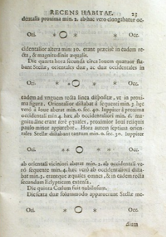 右:Roemer在1676年记录的IO(木卫一)日食现象。(时间已标准化,从午夜而非中午开始计小时数)