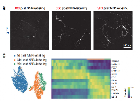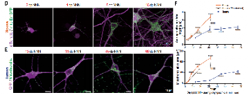 为了提高研究的时间分辨率,他们开发了NNN标记法,相当于一个改造过的CreERT系统,其前端加了一个NeuroD1启动子,它只有在细胞分化为神经元时生效启动;后面的CreERT2包含了雌激素受体的配体结合区突变体,在有他莫昔芬诱导的情况下,它可以与ERT结合,使Cre-ERT2进核发挥Cre重组酶活性,让细胞带上荧光marker-eGFP,这样就能判断某个时间点有哪些细胞已经趋于成熟。而且这个eGFP还融合了CD8,方便后续的鉴定和纯化。