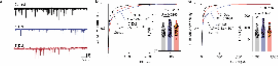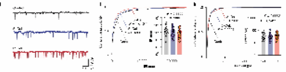 相比之下,iGABA神经元中的突触传递似乎得到了增强,自发抑制性突触后电流的频率增加,表现为3′-Del iGABA神经元中IEIs显著减少。sIPSC的幅度没有变化。