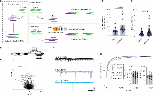 对于GOF NRXN1 3′-Del神经元,他们使用shRNAs敲低MT剪接异构体,以逆转GOF表型。在两个iGLUT(90%)和iGABA(37%)神经元中敲低效果最显著的细胞系中,电生理记录显示突触传递表型的逆转,实现了与对照iGLUT和iGABA神经元相似的IEI水平。在iGLUT神经元中,shRNA MT减少了sEPSC IEI与非靶向shRNA相比,iGABA神经元中sIPSC的IEIs增加。