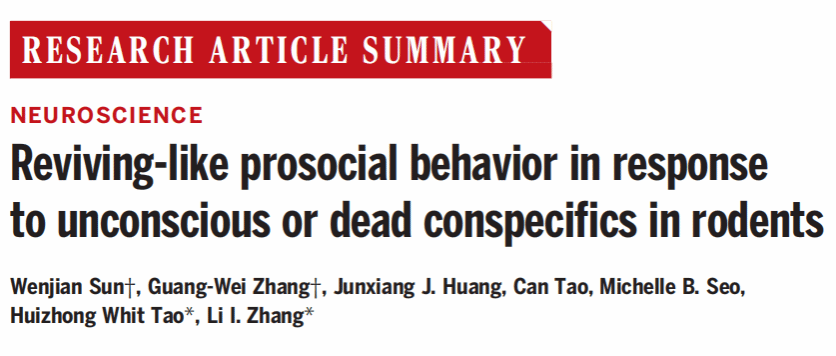 这两篇同期发表于《Science》的研究,从行为特征与神经机制双维度,共同填补了“动物对无反应同类亲社会行为”研究的关键空白。二者均以小鼠为研究对象,证实了啮齿类动物存在针对麻醉昏迷或死亡同类的救助样行为,同时为理解动物亲社会行为的进化逻辑、共情能力提供了关键实验证据,也为后续探索人类急救行为的神经起源及相关社会认知障碍的机制开辟了新方向。