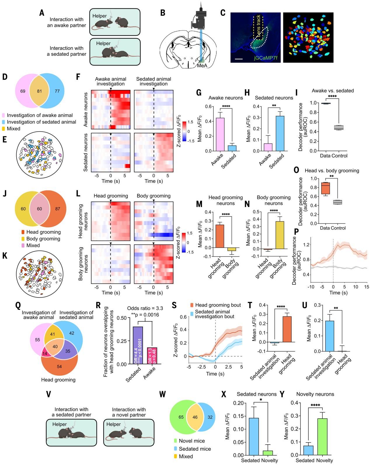 研究人员进一步研究了在头部梳理期间激活的神经元与对镇静或清醒同类的探索期间激活的神经元之间的关系,结果显示,一部分神经元在所有三种类型的事件中都响应,可能反映了这些事件共有的通用社交线索。
